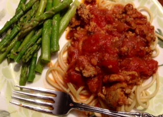 Spaghetti w/ Meat Sauce & Asparagus